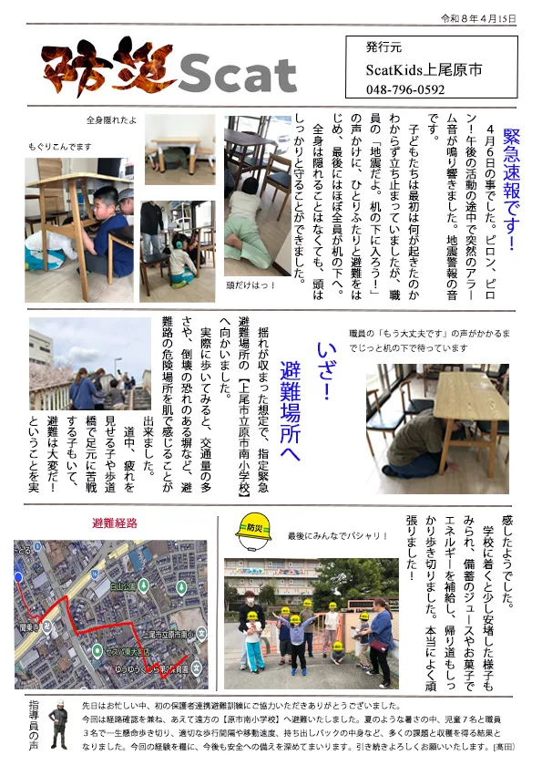 4月2日、防災訓練を行いました。 災害時に、「自分の命を守る」ことと「助け合う」...